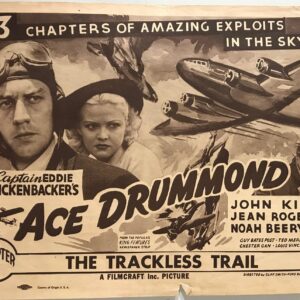 ORIGINAL SERIAL LOBBY CARD – ACE DRUMMOND – 1936 – title card – Ch 7 “The Trackless Trail” – John King, Jean Rogers, Noah Beery Jr., Jackie Morrow