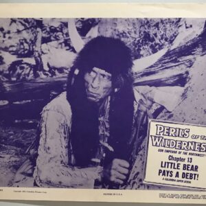 ORIGINAL SERIAL LOBBY CARD – PERILS OF THE WILDERNESS (n) – 1956 – scene card – Ch 13 “Little Bear Pays a Debt!” – Dennis Moore, Richard Emory, Eve Anderson, Kenneth R. MacDonald