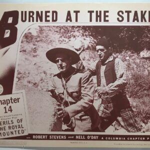 ORIGINAL SERIAL LOBBY CARD – PERILS OF THE ROYAL MOUNTED (a) – 1942 – title card – Ch 14 “Burned at the Stake”