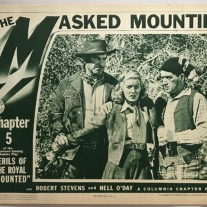ORIGINAL SERIAL LOBBY CARD – PERILS OF THE ROYAL MOUNTED (p) – 1942 – scene card – Ch 5 “The Masked Mountie” – Robert Stevens, Nell O’Nell, Kenneth MacDonald, Herbert Rawlinson