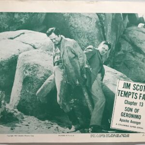 ORIGINAL SERIAL LOBBY CARD – SON OF GERONIMO (c) – 1952 – scene card – Ch 9 “On the Warpath” – Clayton Moore, Rodd Redwing, Tommy Farrell, Eileen Rowe