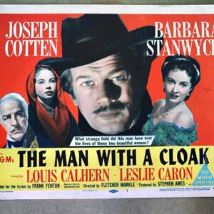 ORIGINAL LOBBY CARD – MAN WITH A CLOAK – 1951 – card #1 – Joseph Cotten, Barbara Stanwyck, Louis Calhern