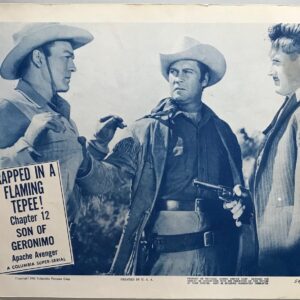 ORIGINAL SERIAL LOBBY CARD – SON OF GERONIMO (a) – 1952 – Title Card – Ch 12 “Trapped in a Flaming Tepee” – Clayton Moore, Rodd Redwing, Tommy Farrell, Eileen Rowe