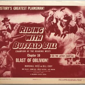 ORIGINAL SERIAL LOBBY CARD – RIDING WITH BUFFALO BILL (a) – 1954 – Title Card – Ch 10 “Blast of Oblivion!” – Marshall Reed, Rick Vallin, Joanne Rio, Shirley Whitney