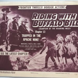 ORIGINAL SERIAL LOBBY CARD – RIDING WITH BUFFALO BILL (a) – 1954 – Title Card – Ch 13 “Trapped in the Apache Mine!” – Marshall Reed, Rick Vallin, Joanne Rio, Shirley Whitney