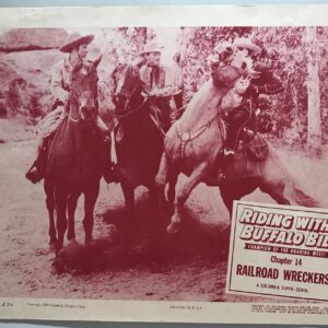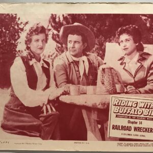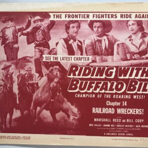 ORIGINAL SERIAL LOBBY CARD – RIDING WITH BUFFALO BILL (a) – 1954 – Title Card – Ch 14 “Railroad Wreckers!” – Marshall Reed, Rick Vallin, Joanne Rio, Shirley Whitney