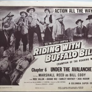 ORIGINAL SERIAL LOBBY CARD – RIDING WITH BUFFALO BILL (a) – 1954 – Title Card – Ch 6 “Under the Avalanche!” – Marshall Reed, Rick Vallin, Joanne Rio, Shirley Whitney