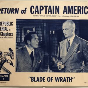ORIGINAL SERIAL LOBBY CARD – RETURN OF CAPTAIN AMERICA (b) – R1953 – scene card – Ch 5 “Blade of Wrath” – Dick Purcell, Lorna Grey, Lionel Atwell, Charles Trowbridge