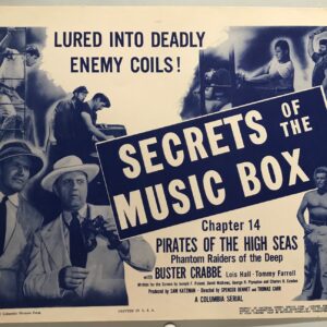ORIGINAL SERIAL LOBBY CARD – PIRATES OF THE HIGH SEAS – 1950 – title card – Ch 14 “Secrets of the Music Box” – Buster Crabbe, Lois Hall, Tommy Farrell, Gene Roth
