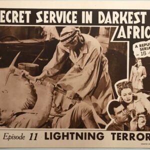 ORIGINAL SERIAL LOBBY CARD – SECRET SERVICE IN DARKEST AFRICA (d) – 1943 – Ch 11 “Lightning Terror” – Rod Cameron, Joan Marsh, Duncan Renaldo, Lionel Royce