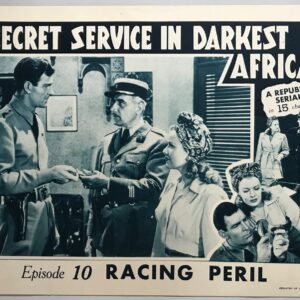 ORIGINAL SERIAL LOBBY CARD – SECRET SERVICE IN DARKEST AFRICA (b) – 1943 – Ch 10 “Racing Peril” – Rod Cameron, Joan Marsh, Duncan Renaldo, Lionel Royce