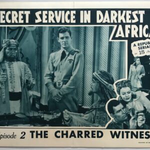 ORIGINAL SERIAL LOBBY CARD – SECRET SERVICE IN DARKEST AFRICA (b) – 1943 – Ch 2 “The Charred Witness” – Rod Cameron, Joan Marsh, Duncan Renaldo, Lionel Royce