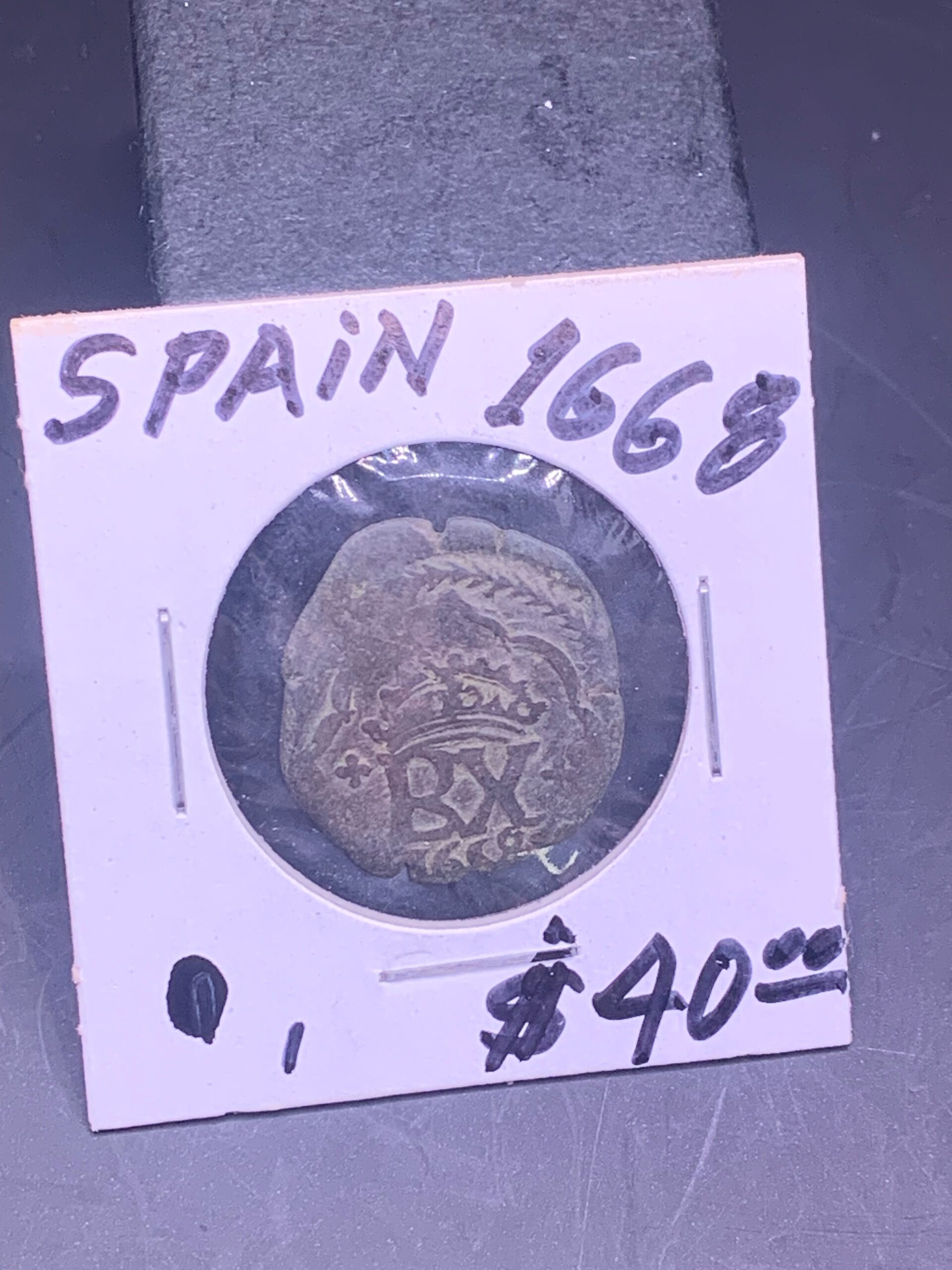 1668 COLONIAL SPANISH COIN CROWN “BX”