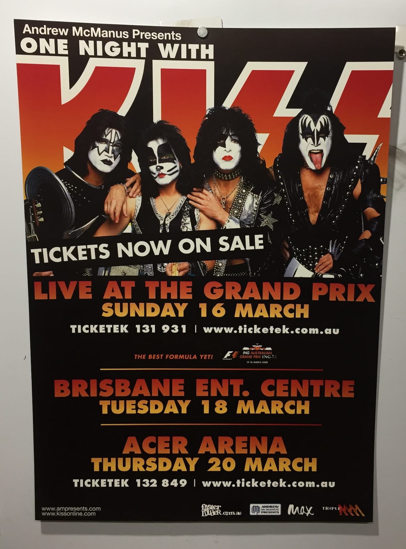 MUSIC PROMO POSTER – KISS – ONE NIGHT WITH – 2008 Australian Tour