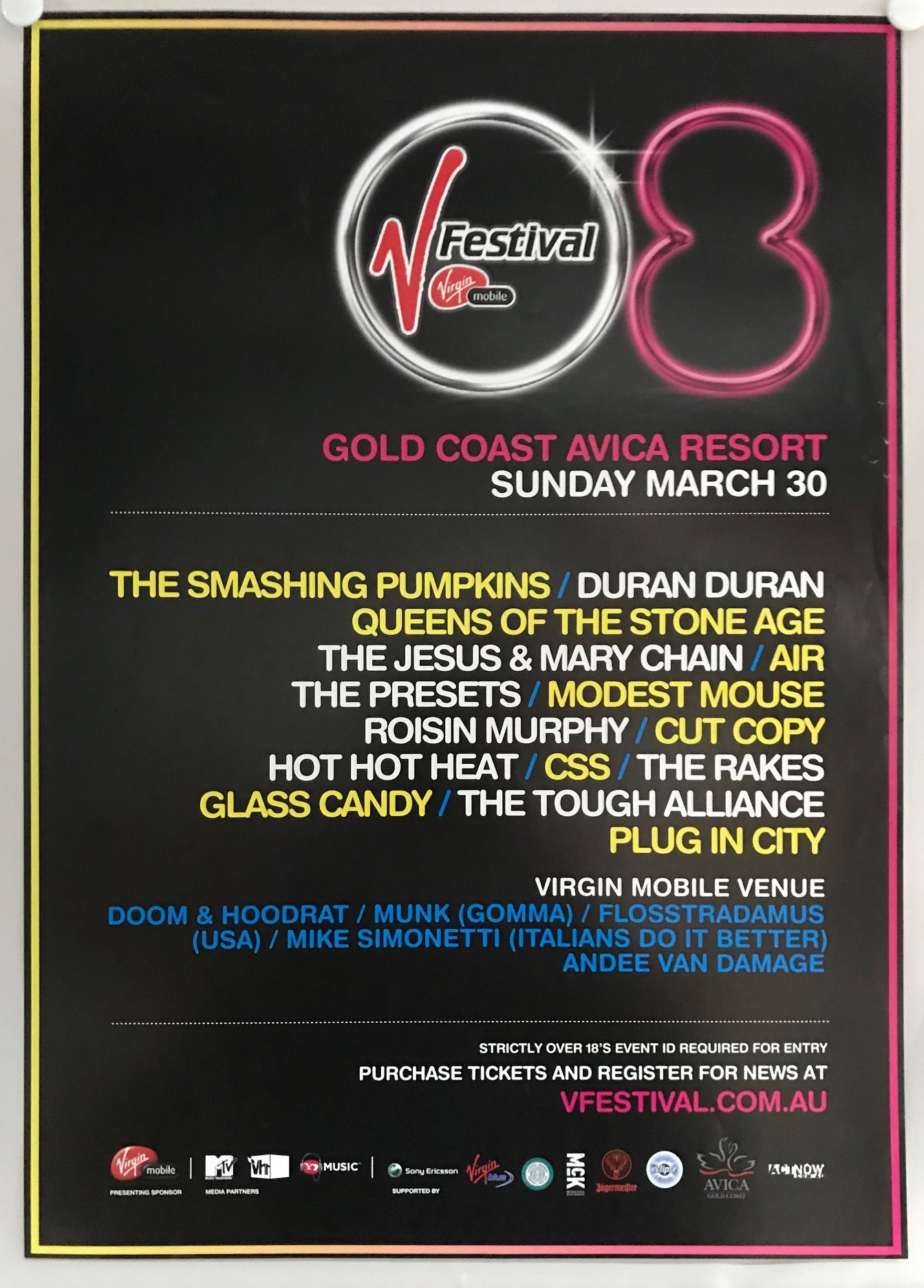 MUSIC PROMO POSTER – V FESTIVAL 08(a) – SMASHING PUMPKINS, DURAN DURAN, QUEENS OF THE STONE AGE