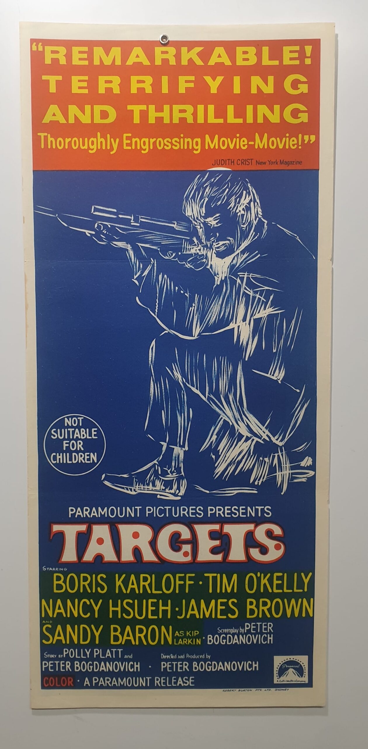 ORIGINAL DAYBILL MOVIE POSTER – TARGETS KARLOFF O’KELLY HSUEH BROWN BARON PLATT BOGDANOVICH