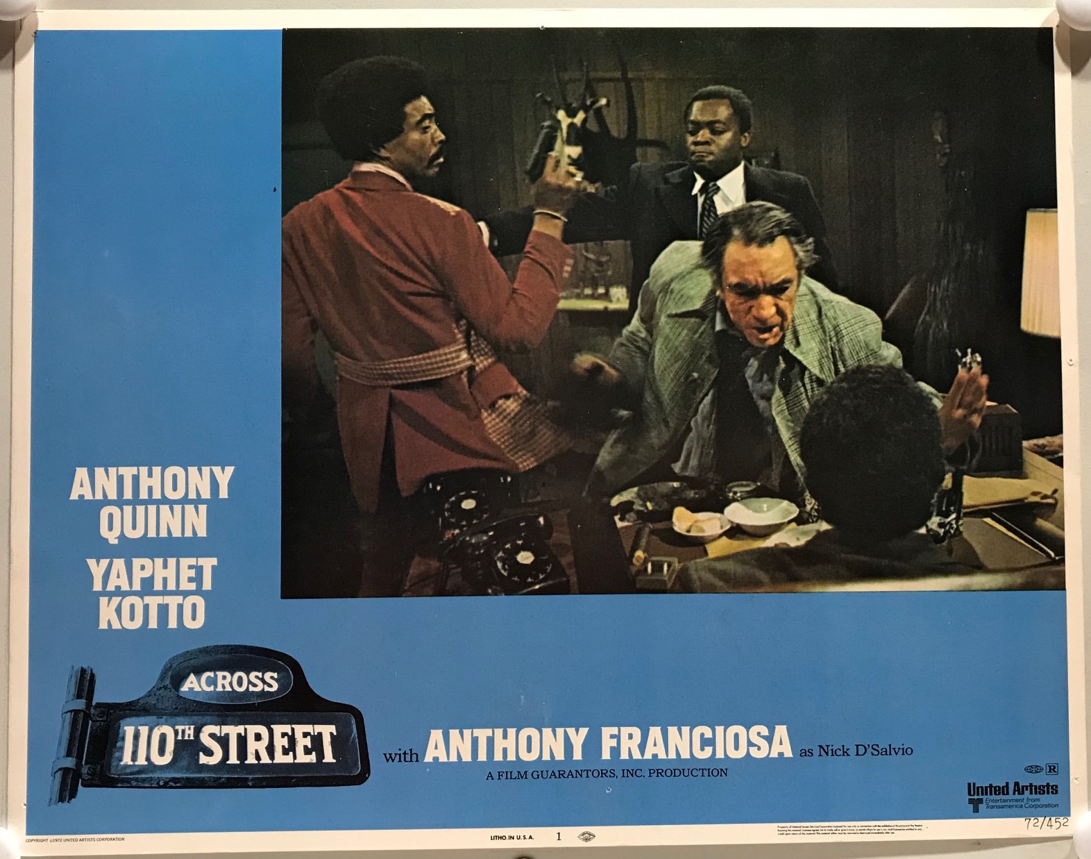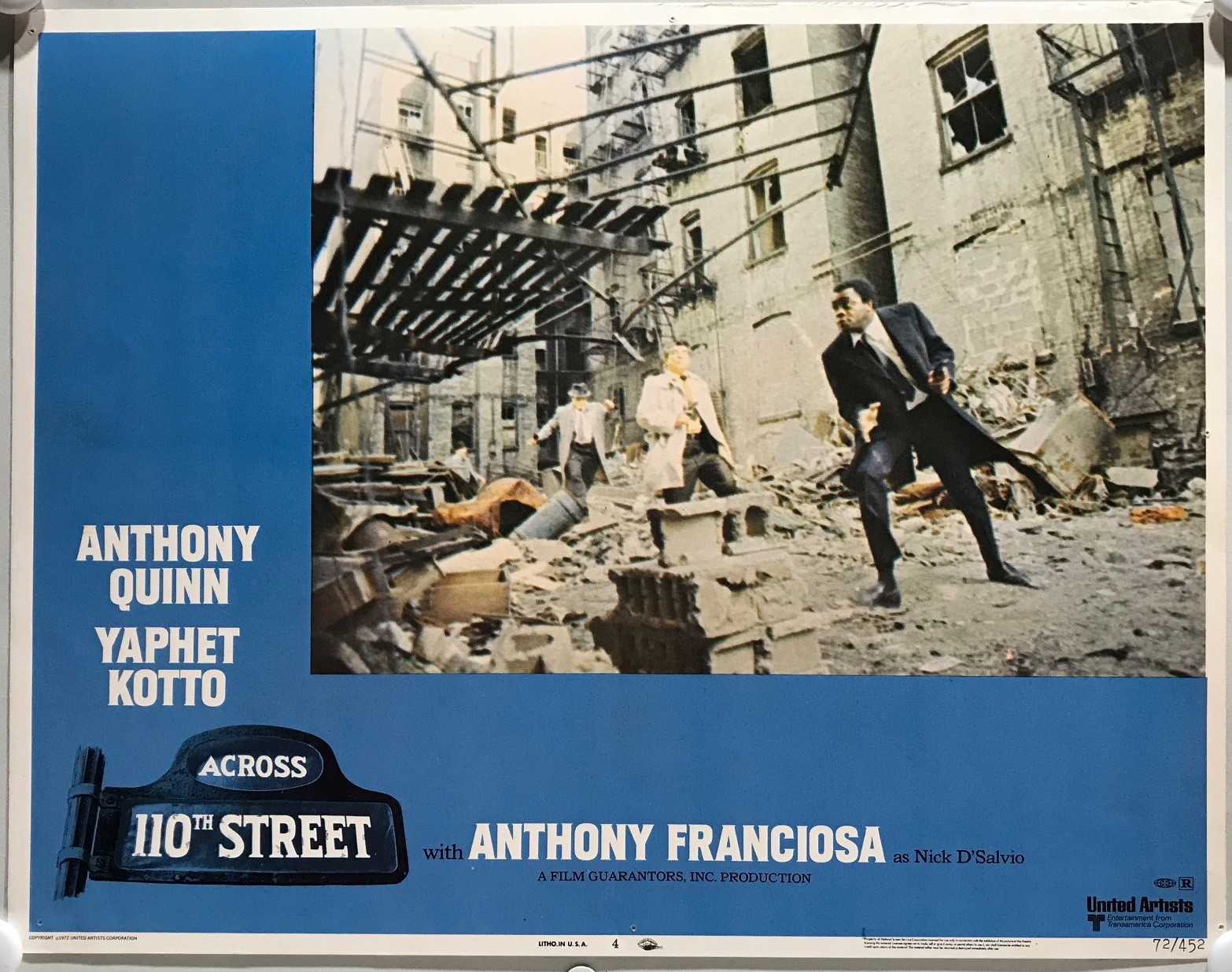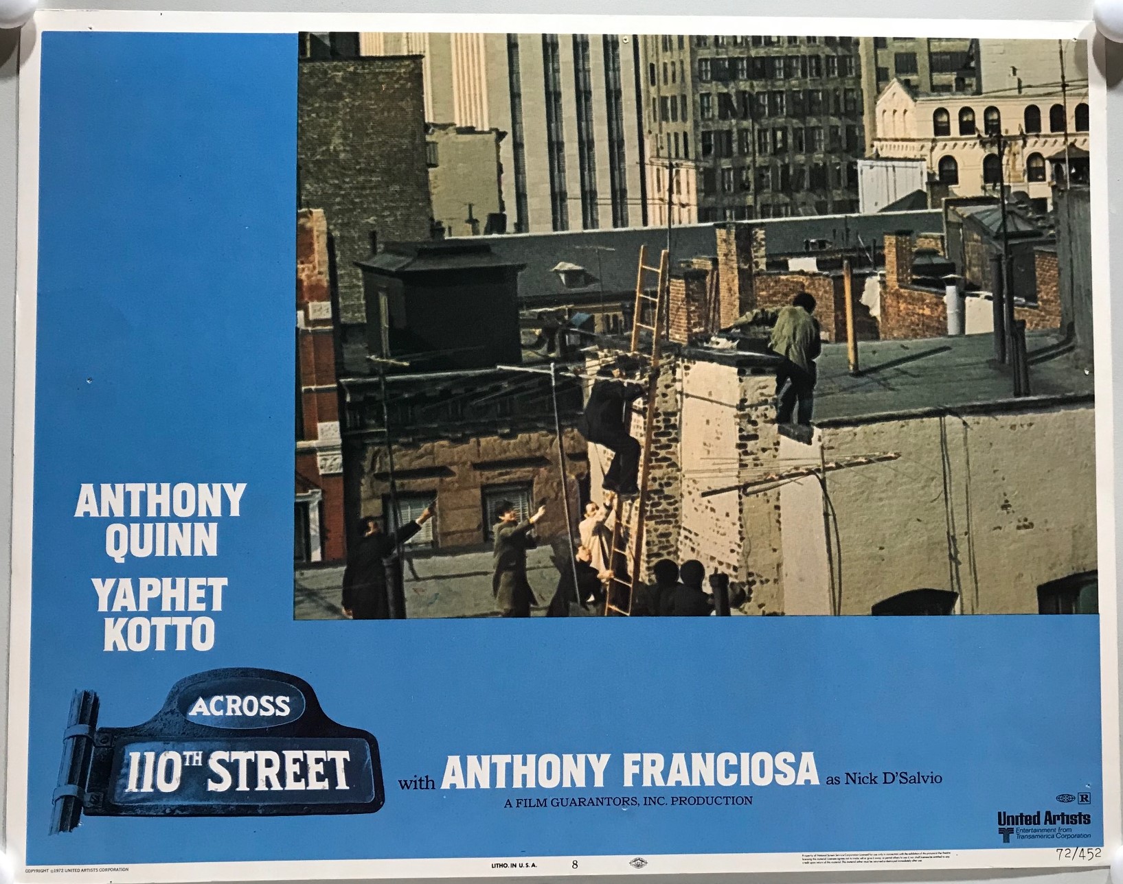 ORIGINAL LOBBY CARDS – ACROSS 110TH STREET – 1972 – set of 8 – Anthony Quinn, Yaphet Kotto, Anthony Franciosa, Paul Benjamin