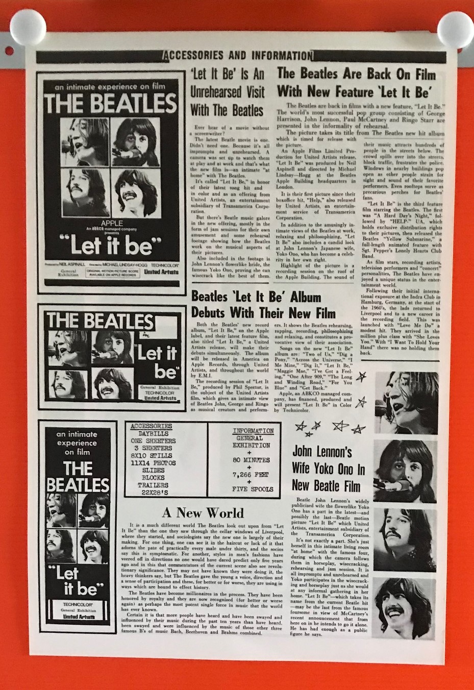 ORIGINAL MOVIE PRESS SHEET – LET IT BE – THE BEATLES – 1970