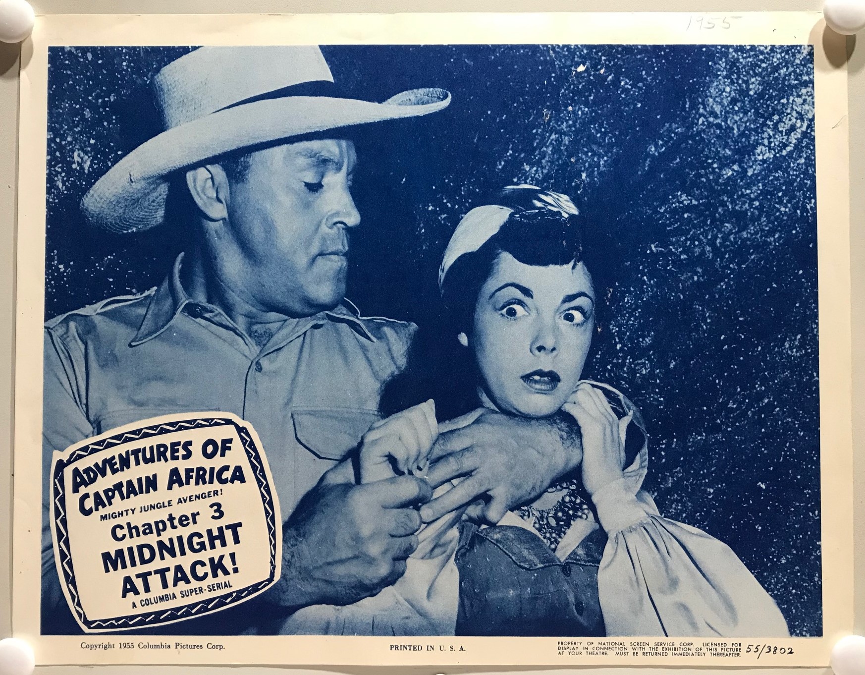 ORIGINAL SERIAL LOBBY CARD – ADVENTURES OF CAPTAIN AFRICA “Mighty Jungle Avenger!” (b) -1955 – Ch 3 “Midnight Attack”
