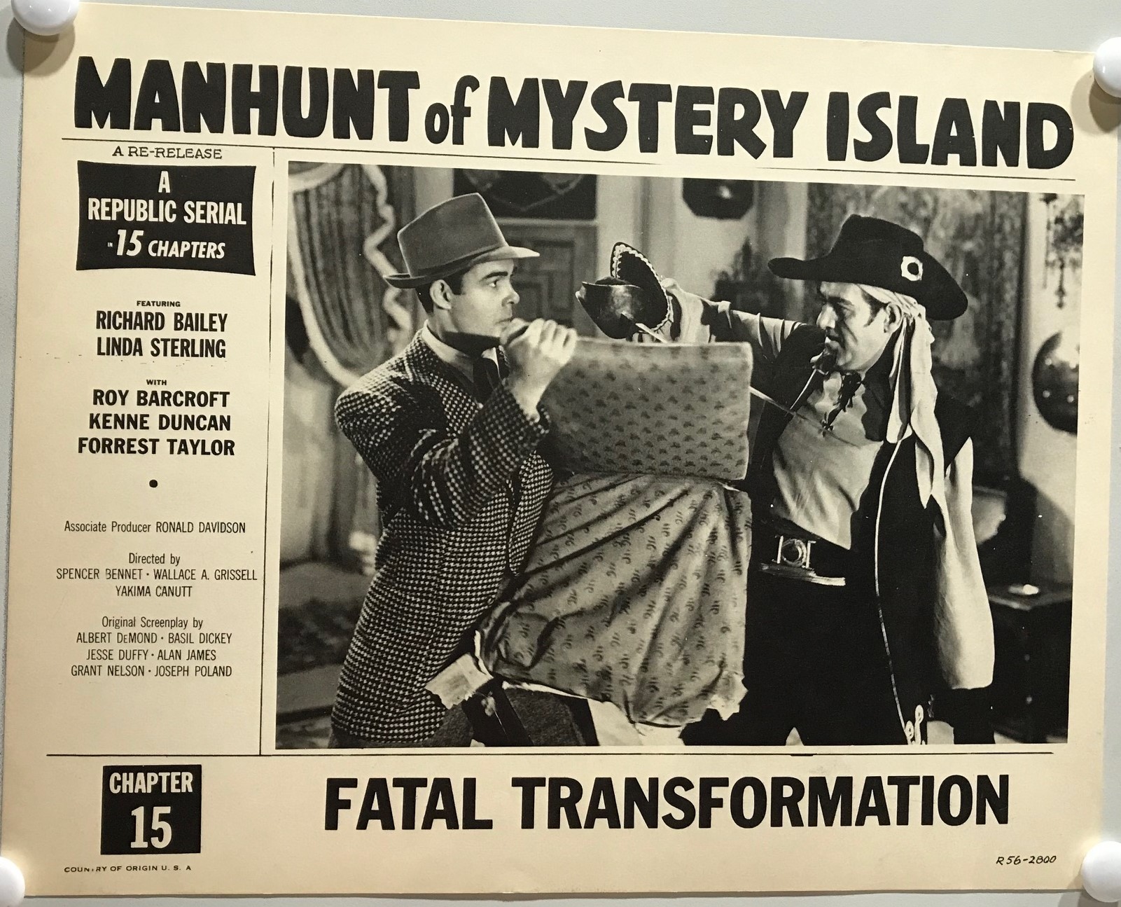 ORIGINAL SERIAL LOBBY CARD – MANHUNT OF MYSTERY ISLAND – R1956 – scene card – Ch 15 “Fatal Transformation”