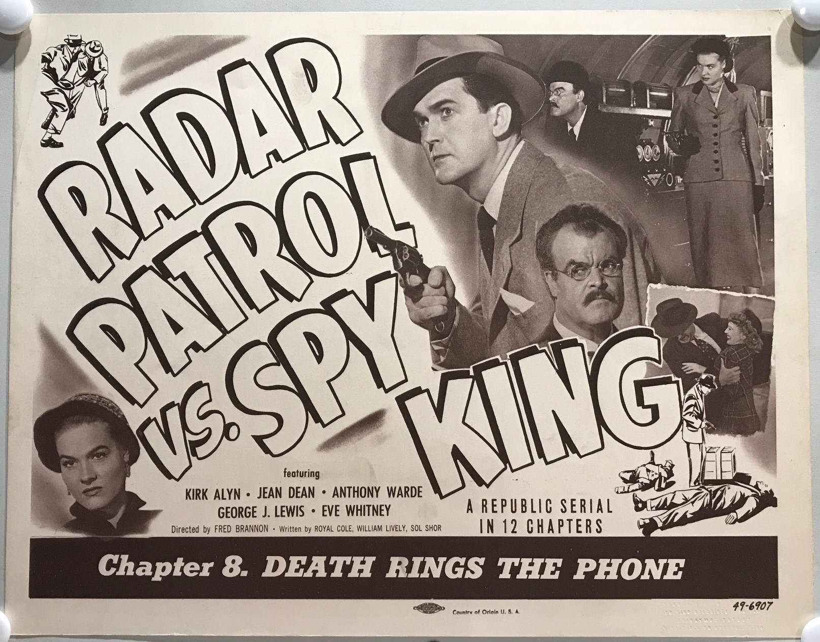 ORIGINAL SERIAL LOBBY CARD – RADAR PATROL VS. SPY KING – 1949 – title card – Ch 8 “Death Rings the Phone”