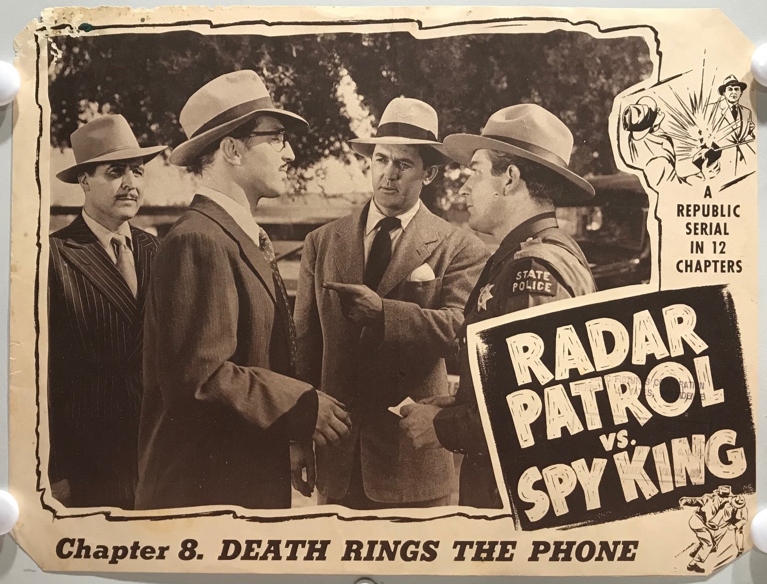 ORIGINAL SERIAL LOBBY CARD – RADAR PATROL VS. SPY KING (a) – 1949 – scene card – Ch 8 “Death Rings the Phone”