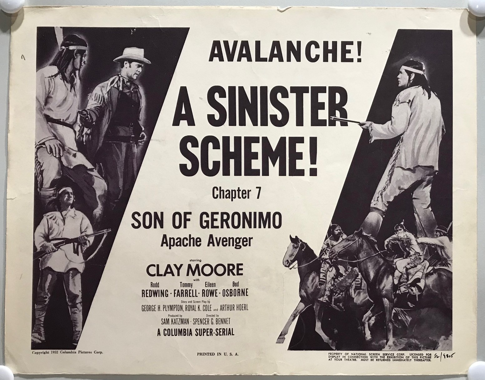 ORIGINAL SERIAL LOBBY CARD – SON OF GERONIMO (a) – 1952 – Title Card – Ch 7 “A Sinister Scheme!”