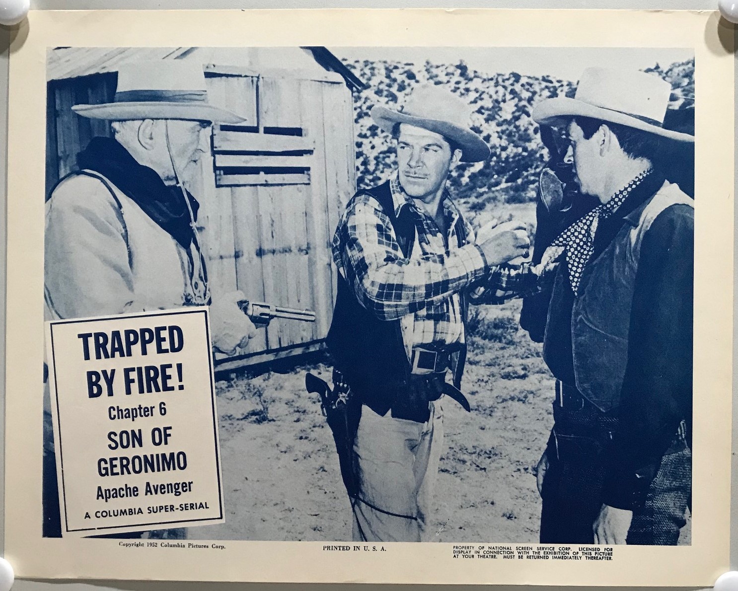 ORIGINAL SERIAL LOBBY CARD – SON OF GERONIMO (b) – 1952 – scene card- Ch 6 “Trapped by Fire”