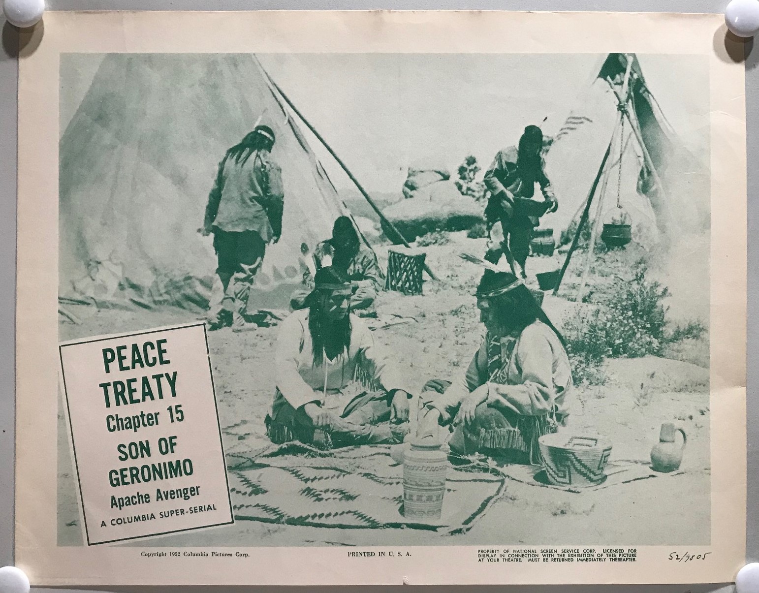 ORIGINAL SERIAL LOBBY CARD – SON OF GERONIMO (d) – 1952 – scene card – Ch 15 “Peace Treaty”