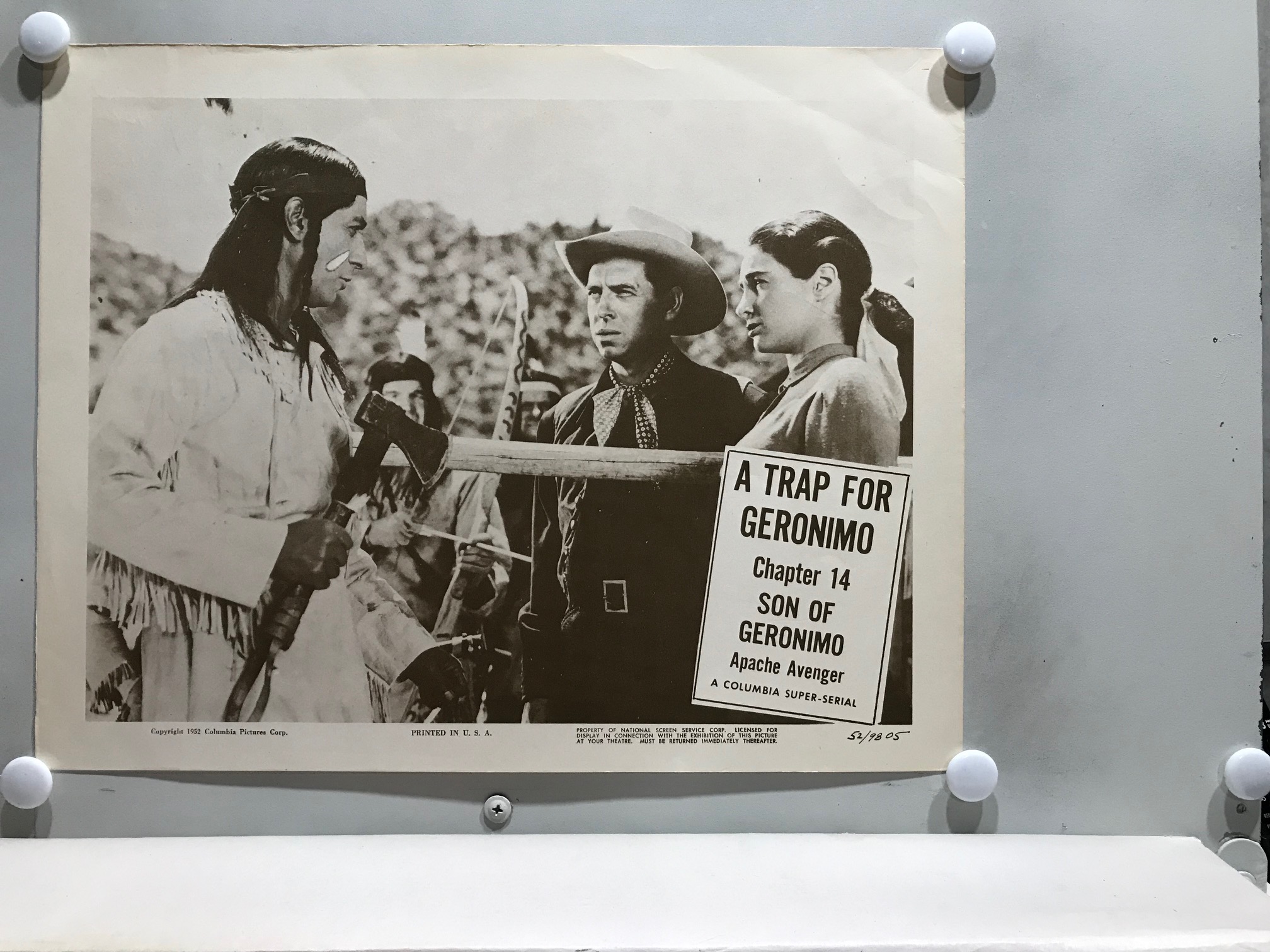 ORIGINAL SERIAL LOBBY CARD – SON OF GERONIMO (e) – 1952 – scene card – Ch 14 “A Trap for Geronimo”