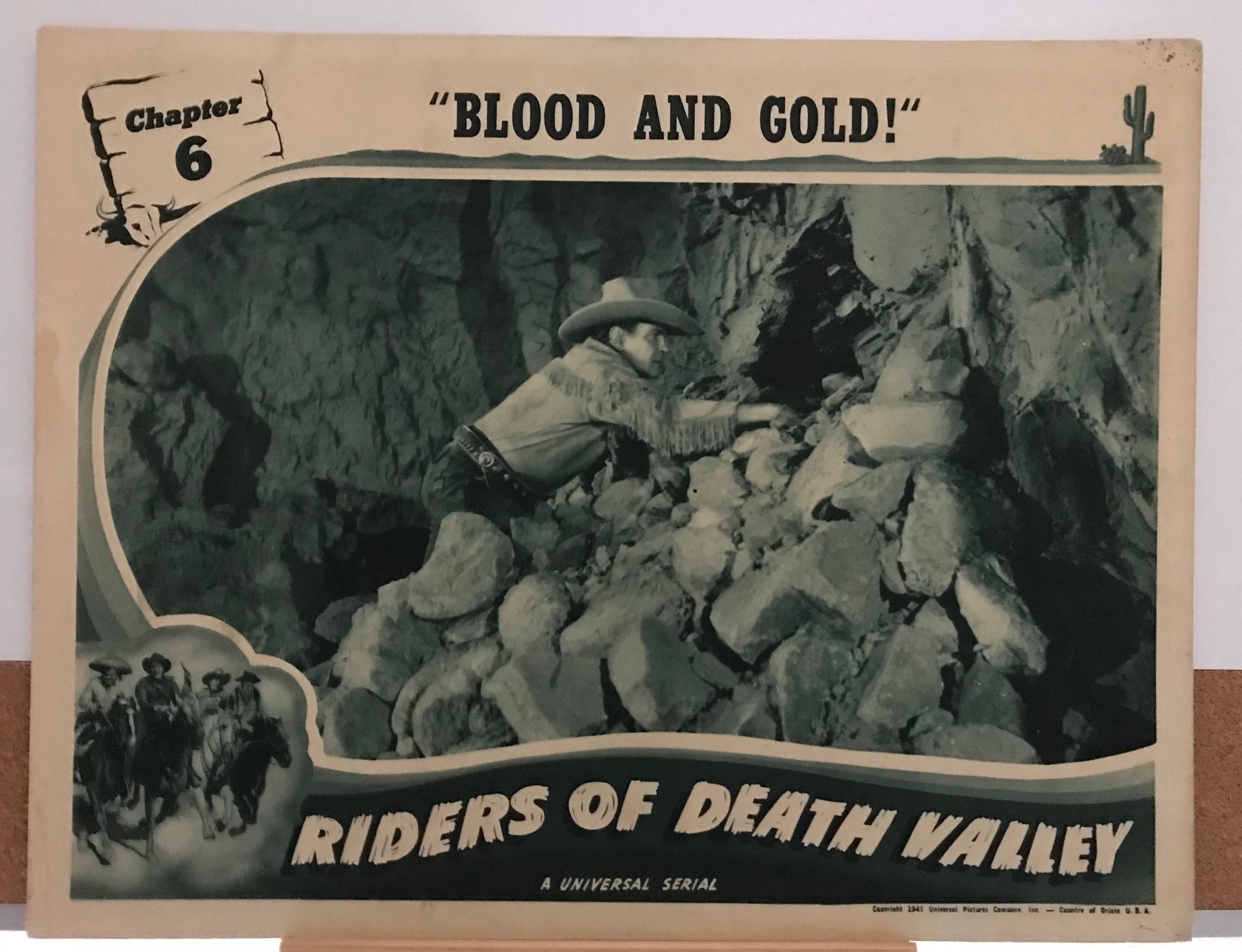 #2 – RIDERS OF DEATH VALLEY (b) – 1941 – scene card – Ch 6 “Blood and Gold!”. Serial-#2-137