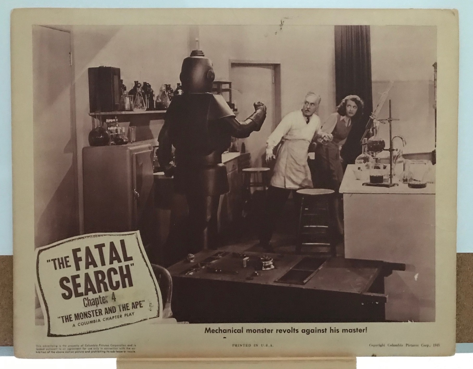 #4 – THE MONSTER AND THE APE – 1945 – scene card – Ch 4 “The Fatal Search”. Serial #4-26