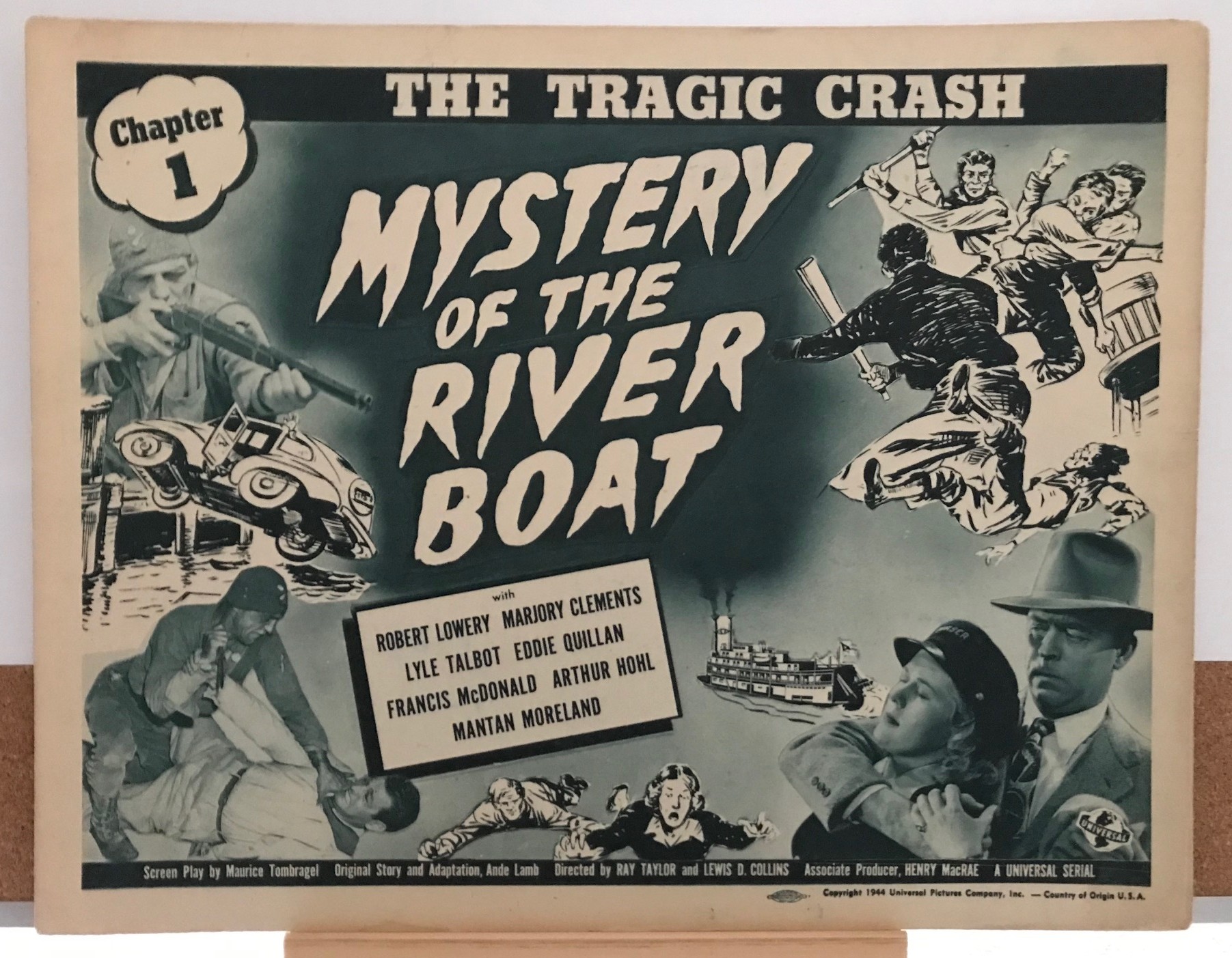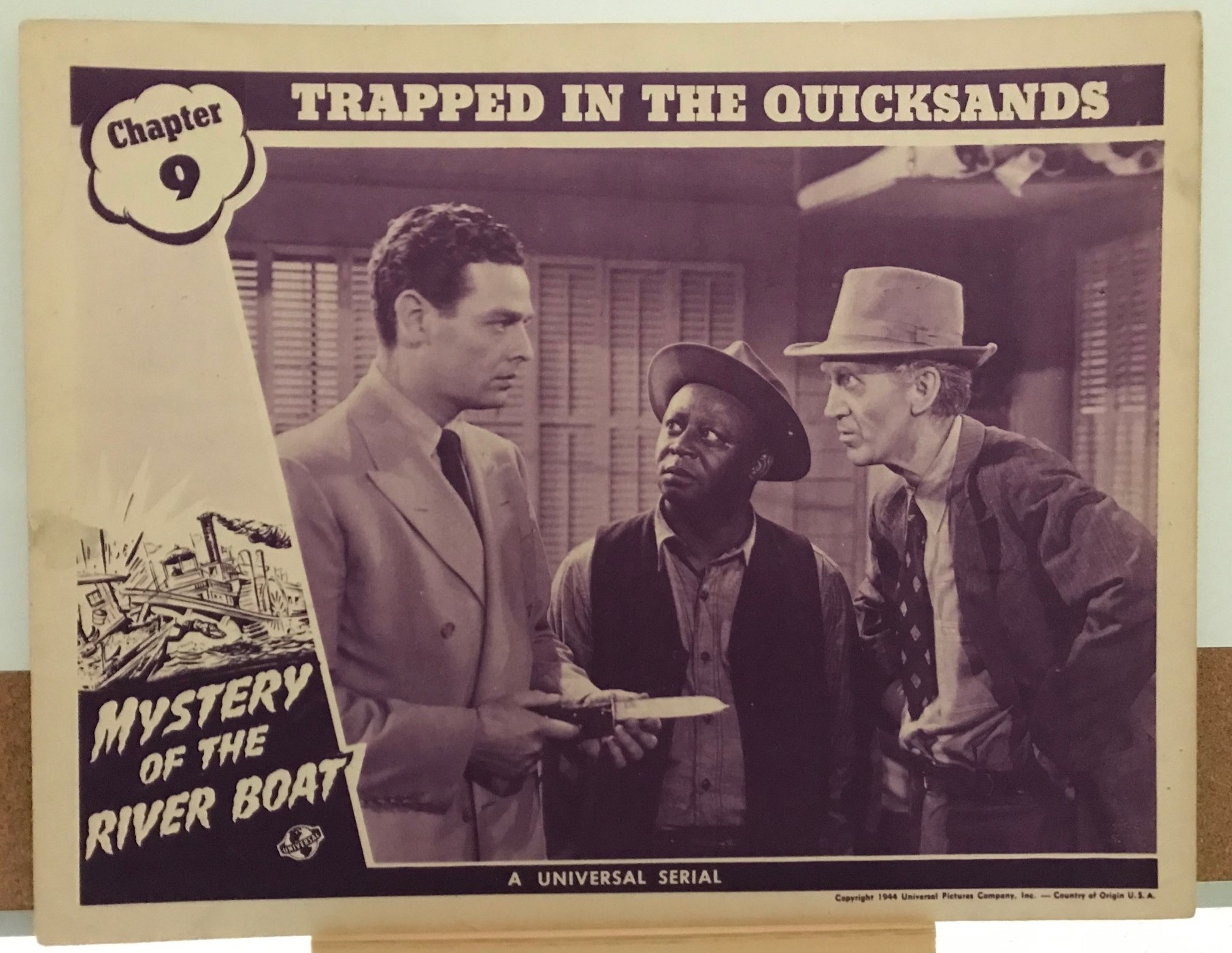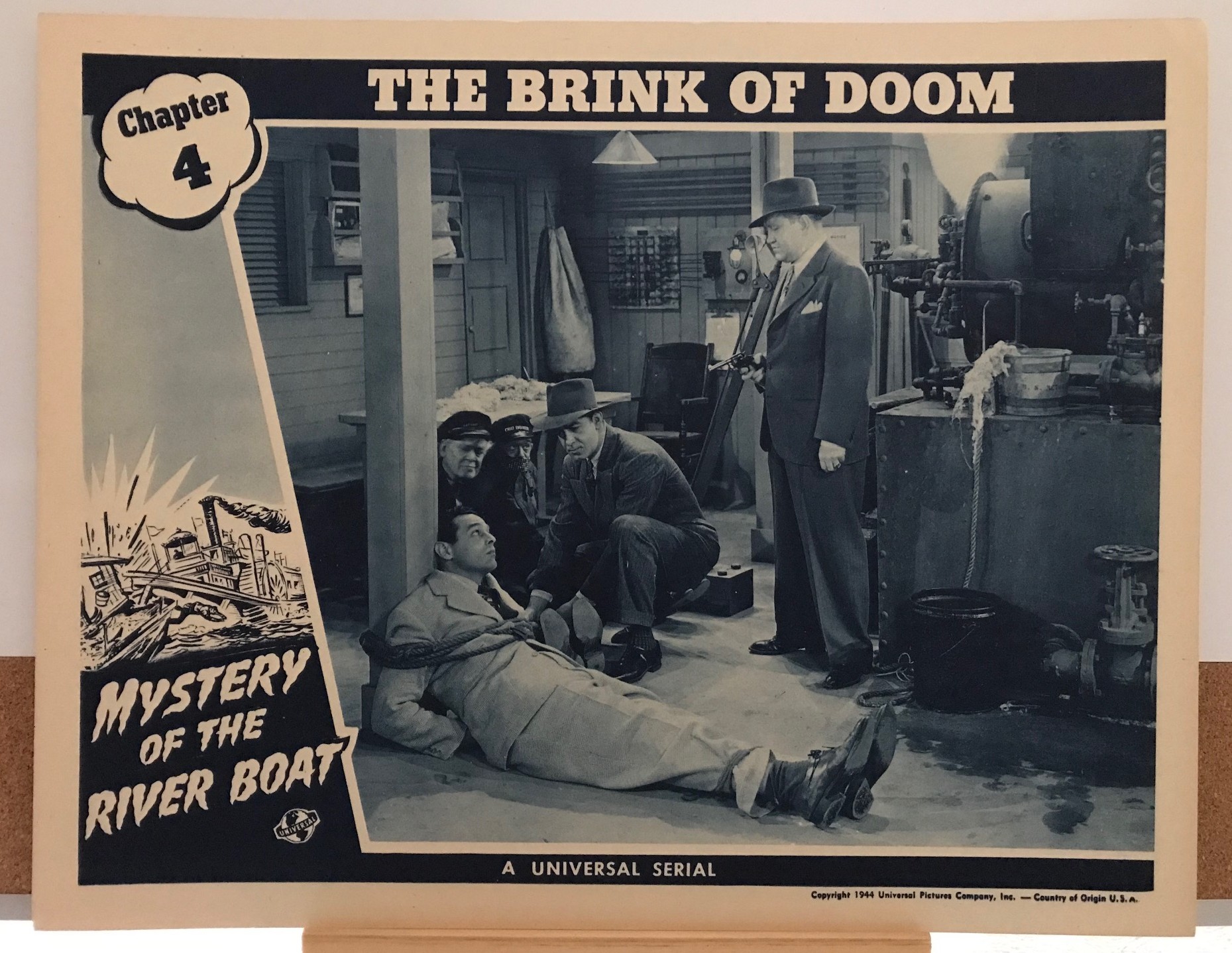 #6 – MYSTERY OF THE RIVER BOAT (b) – 1944 – scene card – Ch 4 “The Brink of Doom”. Serial #4-33