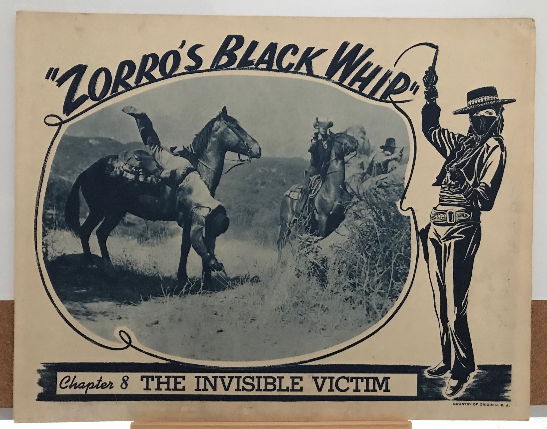 #11 – ZORRO’S BLACK WHIP – 1944 – scene card – Ch 8 “The Invisible Victim”. Serial #5-124