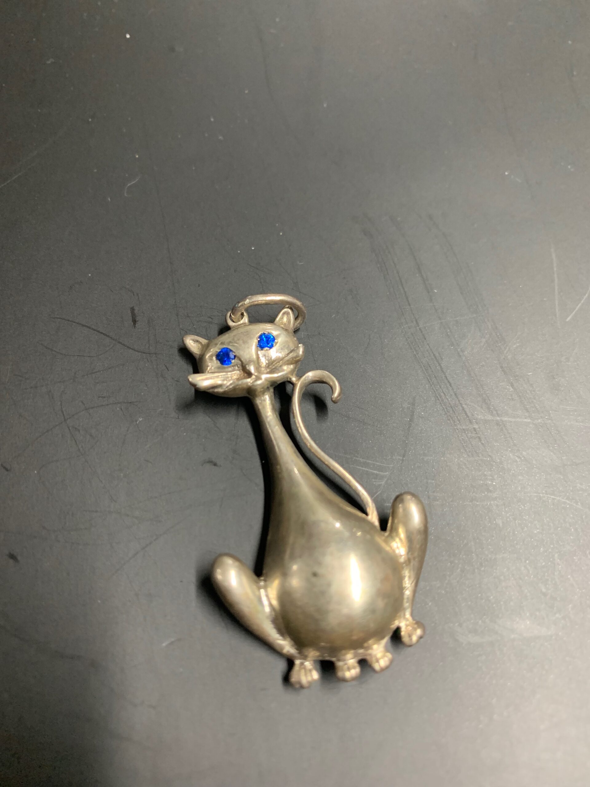 SILVER PENDANT – CAT PENDANT WITH TWO BLUE UNIDENTIFIED STONES