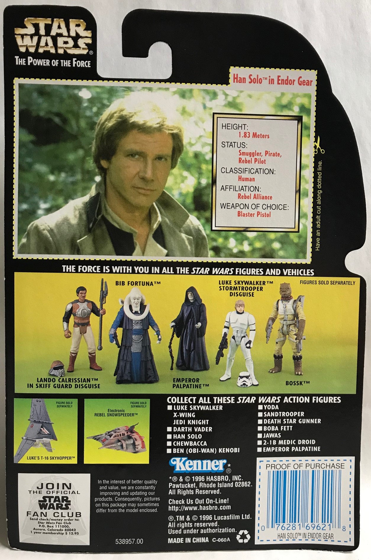 STAR WARS – KENNER – POTF – HAN SOLO – in Endor Gear with Blaster Pistol;