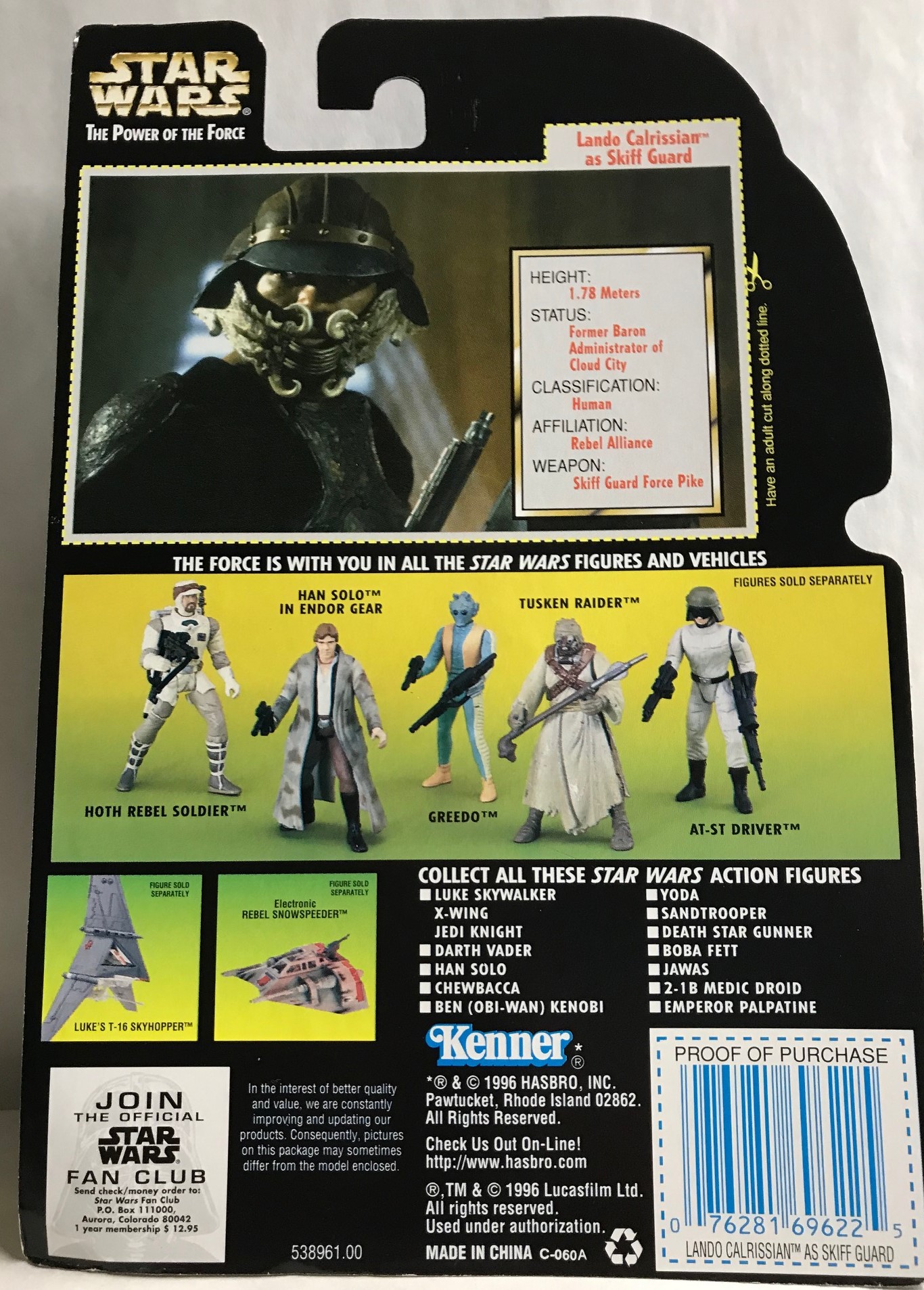 STAR WARS – KENNER – POTF – LANDO CALRISSIAN – as Skiff Guard with Skiff Guard Force Pike;