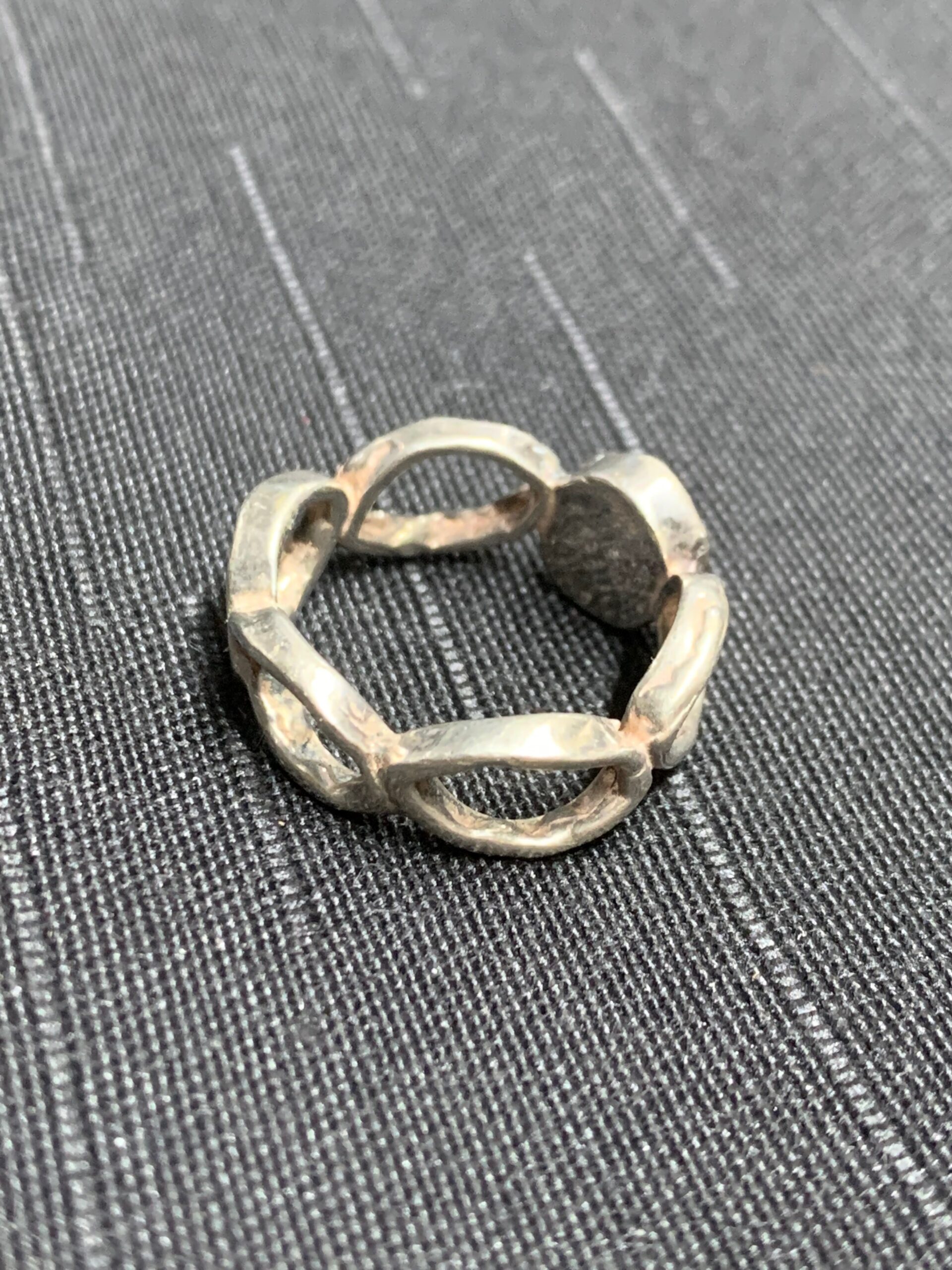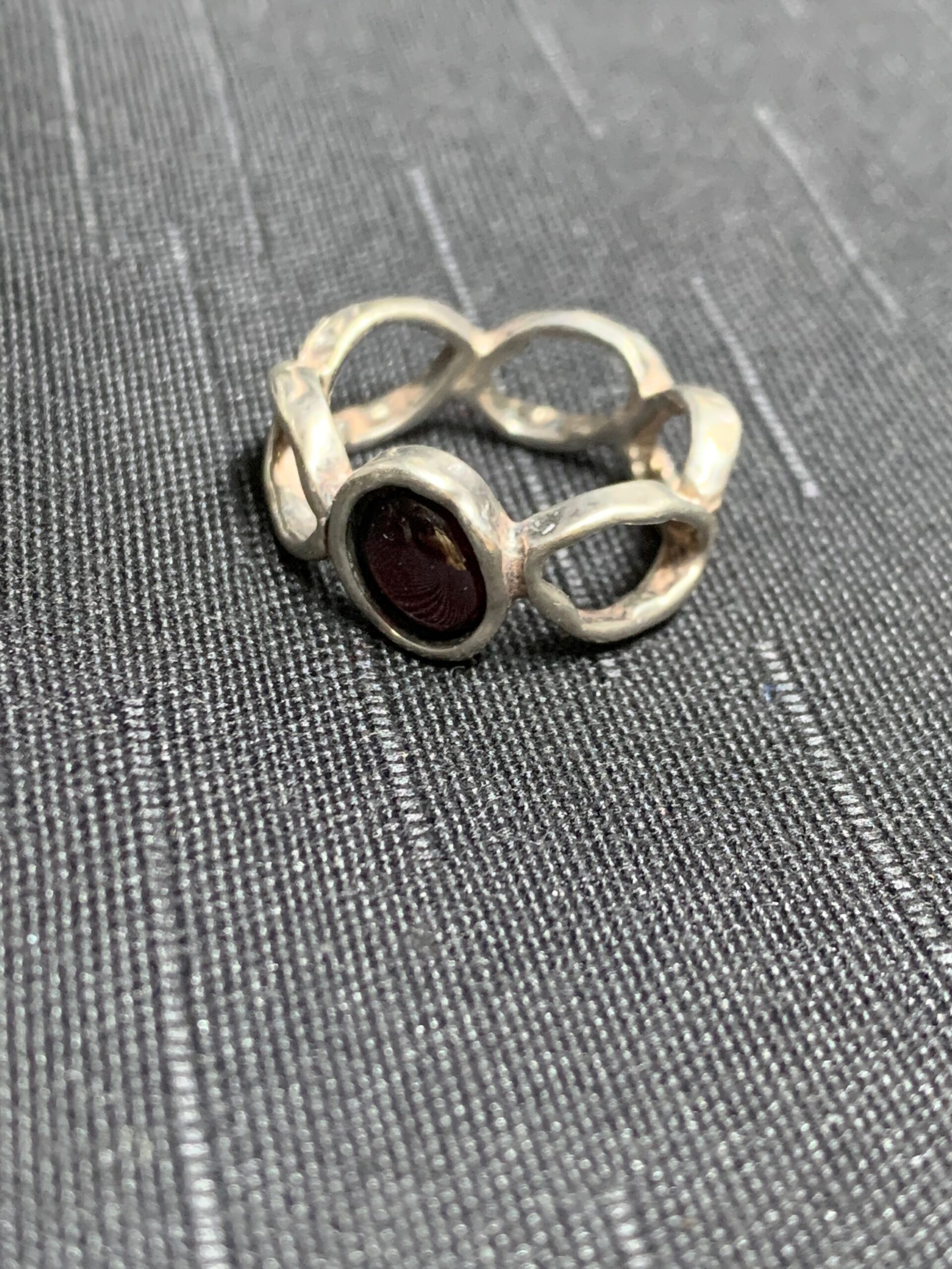 UNISEX SILVER RING – CHAIN PATTERN WITH UNKNOWN RED STONE SETTING